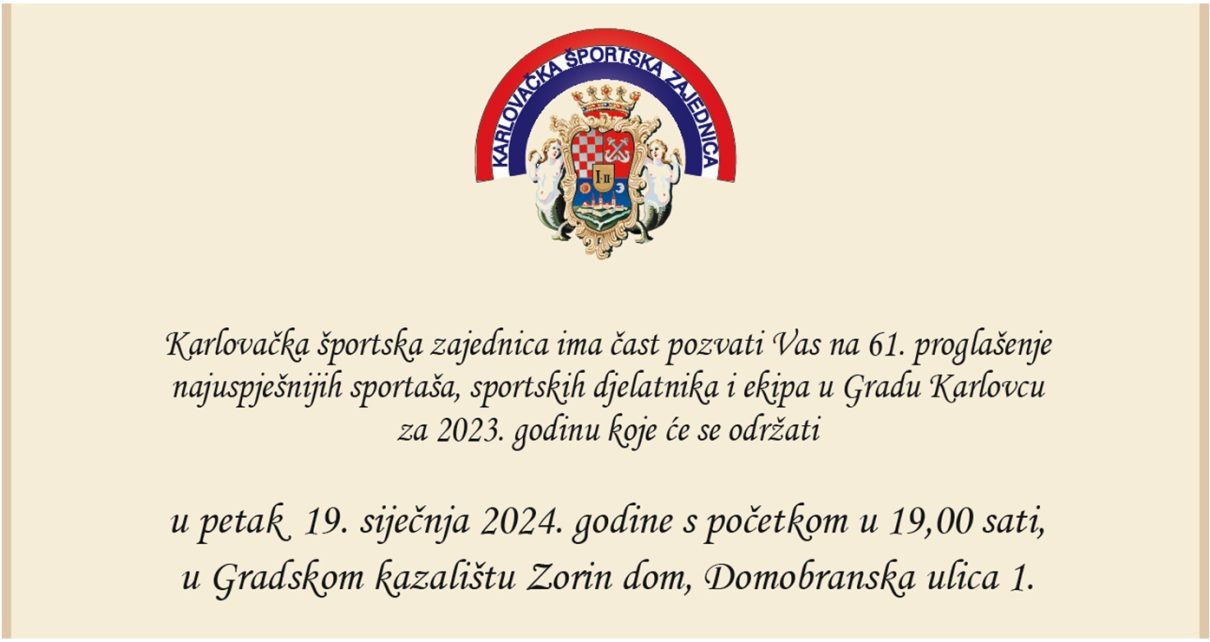 Karlovačka športska zajednica (KŠZ) proglasit će večeras, petak 19. siječnja 2024. godine, najbolje pojedince i udruge u sportu Karlovca za prošlu godinu.