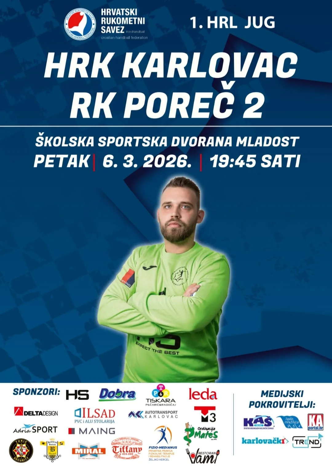 RUKOMET U 15. kolu Prve hrvatske rukometne lige – južna skupina HRK Karlovac je domaćin drugoj momčadi Poreča. Utakmica se igra u petak, 6. ožujka od 19:45 sati u Školskoj sportskoj dvorani. Rukometaši Dubovca Gaze u nedjelju gostuju kod Ribole Kaštela, a susret počinje u 18 sati.